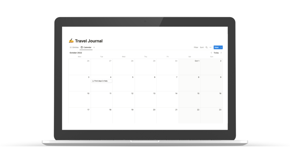 → Keep a travel journal, follow your journey in calendar mode and link the entries to your trips